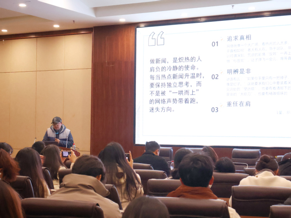 “在这个信息爆炸的时代,作为记者如何保证报道的客观、真实?”讲座伊始,谢米特便强调做一名好记者,要掌握上与下、冷与热、大与小、躺与卷、苦与甜、质与量、攻与守、入与出这8个关键词:要“站在天安门上看问题,站在田埂上找感觉”,不仅要有大局观,还要深入一线察民情听民声,兼顾“上与下”,这样才能做出精品力作;要保持独立思考的能力,但又不失炽热的“冷与热”……