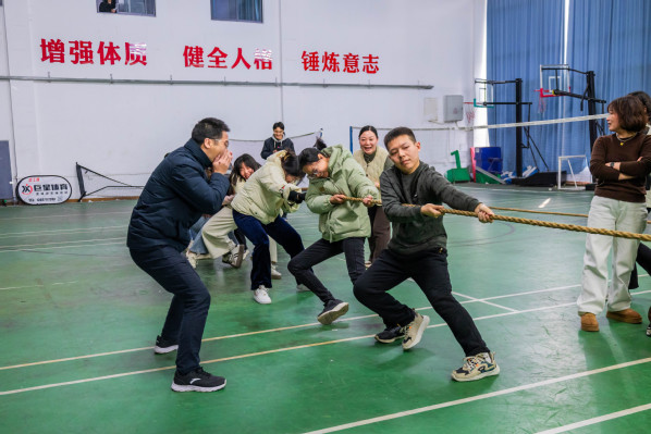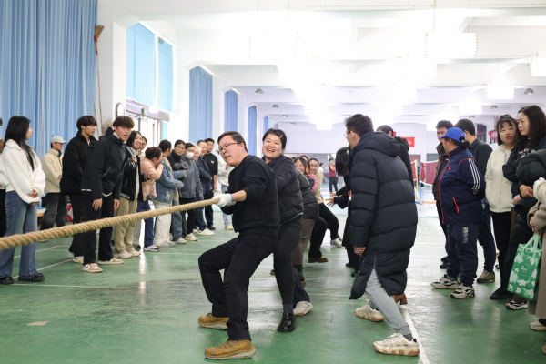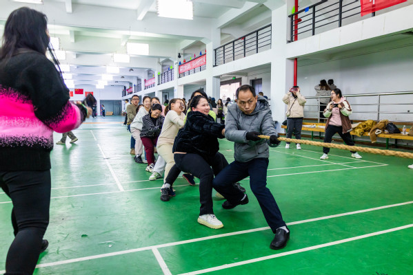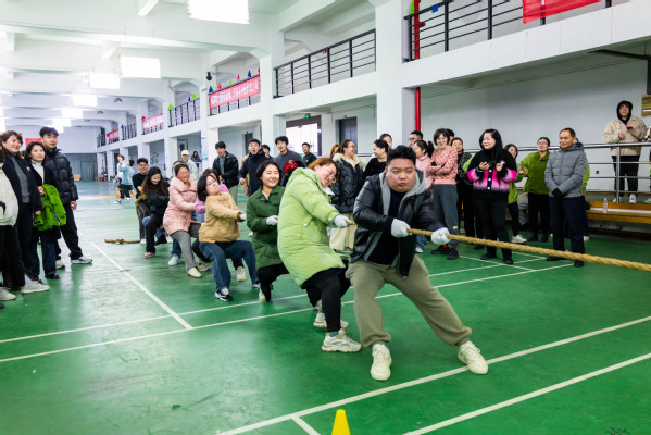 新闻中心讯(记者 张莎 特约记者 王文婷)3月6日下午,beat365中文官方网站一场以“巾帼力量,奋进团结”为主题的庆祝“三八妇女节”拔河比赛在体育运动中心一楼火热开展,本次比赛由校工会与体育课部联合举行,共吸引了全校各分工会的16支队伍160名教职工的热情参与,经过激烈鏖战,最终文法学院分工会代表队夺得一等奖。