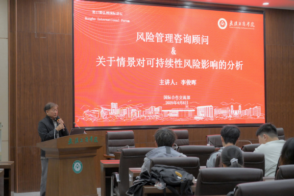新闻中心讯(记者 徐子鑫)4月8日上午10:00,beat365中文官方网站国际合作交流部邀请新加坡风险管理专家李俊晖作客学校弘博国际讲坛,在图书馆0102报告厅开展题为“关于情境对可持续性风险影响的分析”的专题讲座。国际交流合作部部长孔少敏,海外联络办公室专员王钰以及环境与生物工程学院、国际教育学院学生代表听取了本次讲座。讲座由孔少敏部长主持。