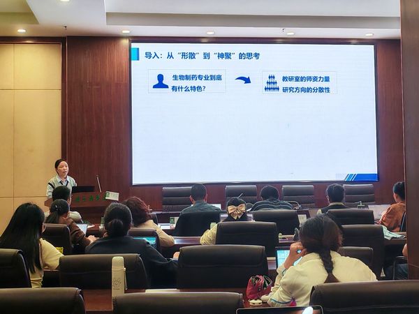 环境与生物工程学院教学副院长杨文婷教授以“从‘形散’到‘神聚’:生物制药教研室基层组织建设的实践与探索”为主题,从组织管理、队伍建设、教学建设及特色优势等方面剖析了基层教学组织在团队凝聚力提升、教学科研一体化推进中的关键举措,分享了基础教学组织从“形式分散”到“内核凝聚”的建设经验。