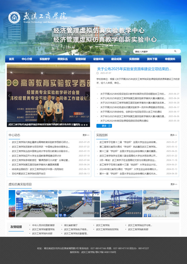 图为经济管理虚拟仿真教学创新实验中心网站页面