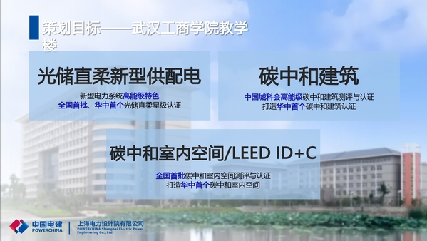 研讨中,双方明确了海映楼绿色低碳建设的三大目标:一是通过光伏发电与储能技术联动,构建光储直柔(光伏+储能+直流配电+柔性控制)新型供配电系统,通过全国首批、华中首个光储直柔星级认证。让大楼具备自己发电、存电、高效直流供电、智能调节用电四大功能,达到节约能源、绿色低碳的目的;二是通过中国城科会高能级碳中和建筑测评与认证,打造华中首个碳中和建筑;三是通过全国首批碳中和室内空间测评与认证,打造华中首个碳中和室内空间。除了学校和上海电力设计院有限公司绿色城市工程院参与项目建设外,学校合作企业湖北君安储能科技有限公司也将参与其中,负责项目中锌溴液流储能系统的建设。
