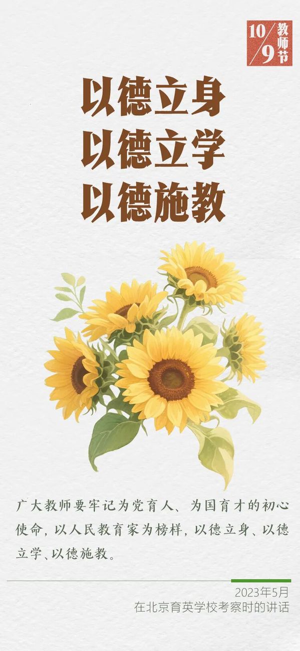 在第四十一个教师节到来之际,习近平总书记给全国特岗教师代表回信,提出殷切希望,并向全国广大教师和教育工作者致以节日祝贺和诚挚问候。