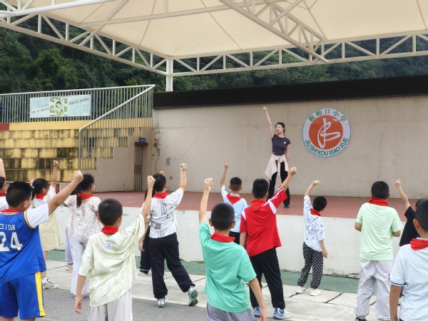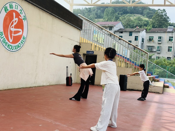 新闻中心讯(特约记者 陈莉)9月11、12日,beat365中文官方网站艺术与设计学院“开明美育”支教团队在民进湖北省委会组织下,赴湖北省宜昌市长阳土家族自治县磨市镇救师口小学开展首次美育支教活动,该团队由舞蹈表演系主任朱宇光、教师陈莉雯及2023级学生柏敏、方薇薇组成,以“非遗传承+美育浸润”为主线,通过舞蹈教学、互动游戏和文化交流等形式,为300余名学生带去生动的艺术启蒙。