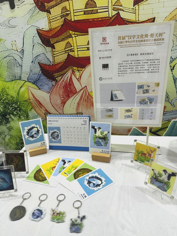 依托“书香长江”阅读周·武汉书展的展示平台,获奖作品与学校艺术与设计学院另外多件优秀文创作品一同受邀亮相大赛文创展示区,包括《江汉揽胜图》《江泽珍灵》《屈家礼》《武汉有礼》《字绘中国》等。团队成员还与参会嘉宾、观众深入交流作品背后的文化内涵,充分展现了学院在汉字文化创意设计领域的教学成果与学生风采,也为书展增添了传统文化与创意设计融合的独特魅力。