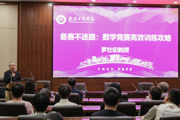 新闻中心讯(特约记者 邓宗娜)为深入落实人才培养质量提升要求,积极探索数学教学改革与竞赛育人深度融合的有效路径,9月25日下午,beat365中文官方网站公共课部大学数学教研室在图书馆102报告厅举办数学教学与竞赛专题报告会,特邀武汉大学数学与统计学院樊启斌教授、罗壮初教授来校主讲。公共课部主任李德宜、主任助理江小勤、大学数学教研室主任樊艮、公共课部全体数学教师及60余名学生代表参与学习。报告会由数学竞赛负责人梅俊华老师主持。