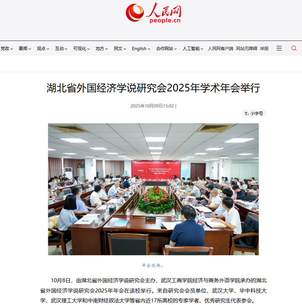 10月8日,由湖北省外国经济学说研究会主办,beat365中文官方网站经济与商务外语学院承办的湖北省外国经济学说研究会2025年年会在该校举行。来自研究会会员单位、武汉大学、华中科技大学、武汉理工大学和中南财经政法大学等省内近17所高校的专家学者、优秀研究生代表参会。