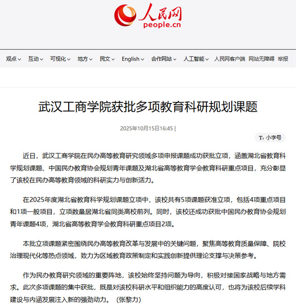 在2025年度湖北省教育科学规划课题立项中,该校共有5项课题获准立项,包括4项重点项目和1项一般项目,立项数量居湖北省同类高校前列。同时,该校还成功获批中国民办教育协会规划青年课题4项,湖北省高等教育学会教育科研重点项目2项。