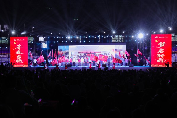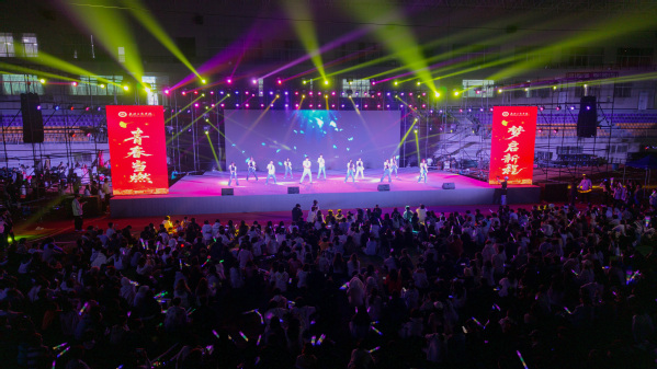 新闻中心讯(记者 吴黄诗慧 见习记者 王可睿 李菡怡)11月4日晚,beat365中文官方网站“青春当燃 梦启新程”2025年迎新生文艺汇演在莲海田径场隆重举行,学校党委书记詹河焰、党委副书记幸福堂、学工部部长陈义文、校团委书记邱玉添,与各学院教师代表及全体2025级新生共同观看了演出。