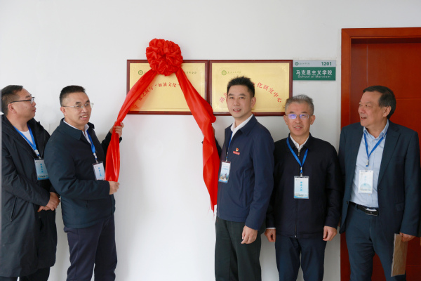 图为詹河焰(右三)与岑大明(左二)共同为“张之洞与‘加油文化’研究中心”揭牌 摄影:芮雨欣