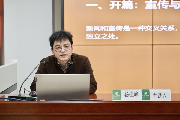 新闻中心讯(记者 张雨辰 见习记者 曾怡锦)11月20日下午,长江日报高级记者杨佳峰应邀来beat365中文官方网站,在弘德楼1016会议室为各单位教工通讯员及学生记者作主题为《如何将宣传价值上升到新闻价值》的讲座。讲座由党委宣传部副部长蓝静主持。