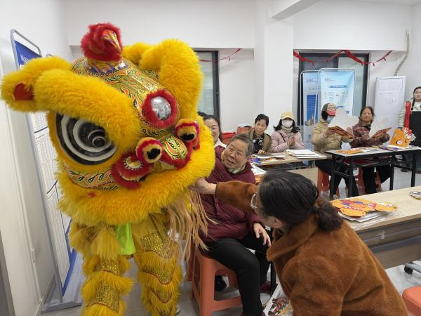 伴随着铿锵的锣鼓声,醒狮表演拉开了活动序幕。只见矫健的表演者们身披锦绣狮袍,以刚柔并济的舞步、灵动传神的律动,将狮子的威武与憨态展现得淋漓尽致。从腾跃翻转到采“青”吐福,每一个动作都凝聚着表演者苦练多年的匠心,每一段鼓点都诉说着生生不息的传承。“这狮子真精神,比电视上看带劲多啦!”居民张阿姨举着手机不停拍摄,脸上溢满笑容,围观人群中也时时响起掌声与喝彩。