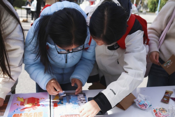 除了静态展示,英式拼字、法式单词接龙、澳洲地标配对等益智游戏,书法与纸伞创作、薰衣草香包缝制、马赛珠饰DIY等手作体验,更让文化交流从“看”升级为“做”。大家手持“打卡护照”穿梭各帐篷,集齐印章后参与抽奖兑换特色纪念品,将文化记忆带回家。