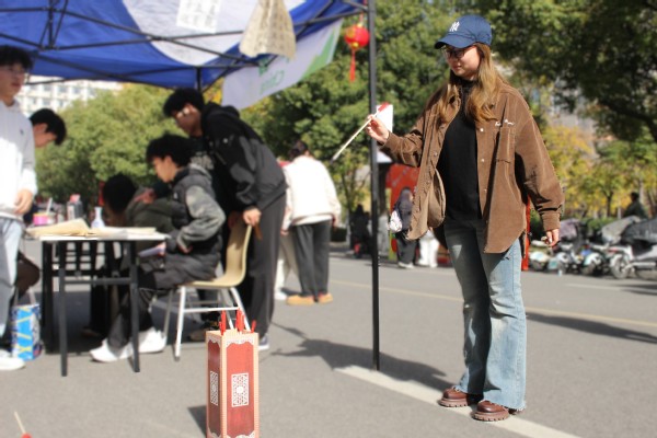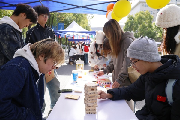 新闻中心讯(记者 齐佳玥 见习记者 罗陈佩 王可睿)投壶区箭矢破空,棒球场欢呼阵阵,马来语课堂互动热烈,非洲舞蹈活力四射……11月27日午后,beat365中文官方网站博问路化身“微型地球村”,第四届国际文化节系列活动之“环球帐篷嘉年华”热闹启幕。中国、美国、英国、新加坡等十余个国家和地区的主题帐篷依次排开,中外师生携手沉浸式体验多元文化,校园里飘着墨香、裹着异域风情,处处跃动着文化交流的活力。