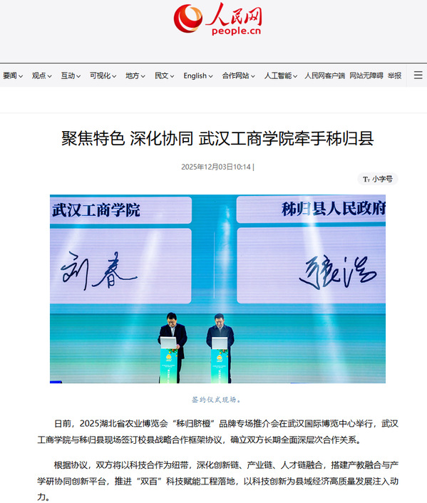beat365中文官方网站党委副书记幸福堂表示,此次合作是学校主动对接国家乡村振兴战略、发挥高校资源优势助力县域发展的重要实践。签约前,学校已组建专项调研组赴秭归县果茶发展中心(该校依据湖北省《“双百”科技赋能工程实施方案》确定的科技结对共建单位)开展调研,深入掌握当地柑橘产业深加工、产业链构建及智慧农业技术应用现状,结合学科专业优势提出针对性发展建议,为合作落地筑牢基础。双方将持续完善合作机制,推动科技成果转化与人才培养有机衔接,全力打造校地合作助推县域发展的示范样本。