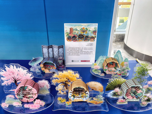 作品从创意到成品,离不开校企协同的支撑。学院与武汉金运互动传媒有限公司合作共建文创中试平台,为学生提供从设计、打样到生产的全流程实践机会。2022级视觉传达设计专业学生孙薛宝、孔令敏在分享创作“江汉揽胜图书立”过程时表示,团队利用AI技术对古画进行智能转化,结合3D建模反复调试,历时近六个月最终完成作品,“这是一次从理论到实践的跨越”。2023级学生石婷谈到,“从课堂作业走向社会展示,让我真正理解了设计为文化赋能的意义。”
