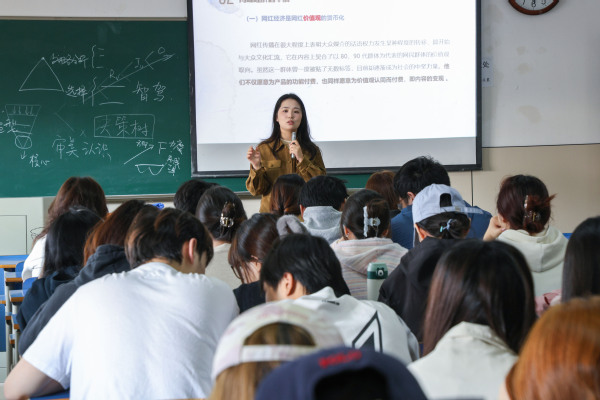 这种“接地气”的教学风格,深受学生欢迎。2023级网络与新媒体专业学生熊乙峰就是其中之一,他从大二下学期起,连续选修了刘沫主讲的多门课程。“起初看到刘老师年轻,还担心她经验不足,但上课后彻底改观了。”熊乙峰坦言,年龄相近反而让沟通更顺畅,课堂氛围自然高效。“她思维灵敏,富有想象力,总能从多个角度把复杂理论讲得通俗易懂;同时她又极为严谨负责,对我们有问必答,尽心尽力。”