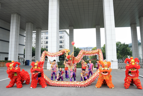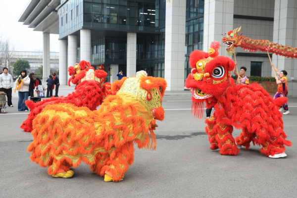 元宵龙狮校园巡游活动现场。孙欢欢摄