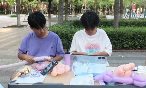 图为学生进行气球创意实践 摄影:吴囿霖