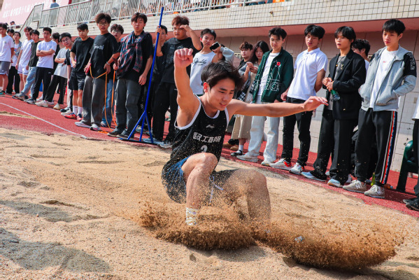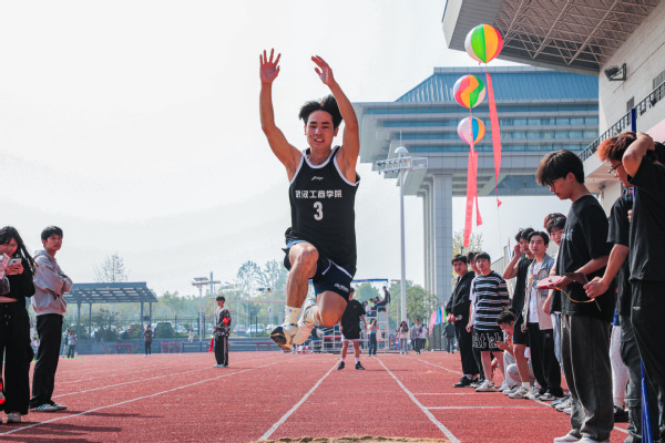 1000米和800米是一个考验体力和毅力的项目,参赛的学生们都咬牙坚持,班里的同学也在旁陪跑加油,冲至终点,即使是最后一名,大家也不言弃,赛出了自我风采。另一边,跳高跳远比赛也在紧张地进行着,场上总是时不时传来一阵欢呼声,选手们的表现十分精彩,有节奏的助跑、起跳,在赛场上划出了一道道属于自己的完美弧线,引来一片欢呼,尽管有些选手是初次尝试,但失误之后仍展现出武工商学子自信的笑容。
