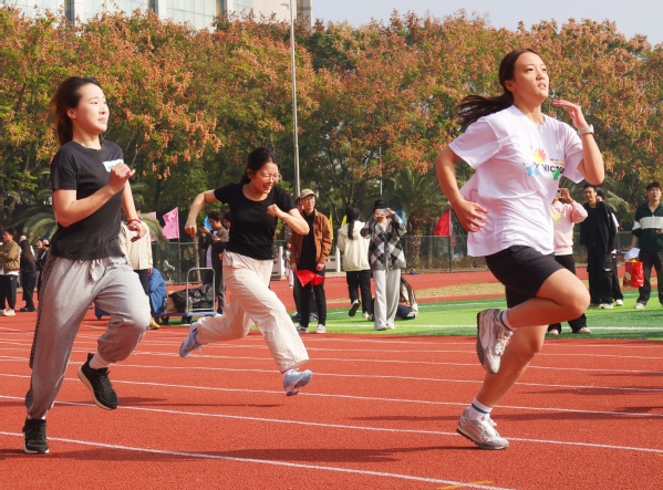 “跑步教会我们很多,唯独没教过我们放弃。”计算机与自动化学院2023级学生罗艺涵是一个体育运动爱好者,她一口气报名参加了跑步、拔河、跳绳、多人多足、仰卧起坐等八项运动会项目,最终她以1分07秒50斩获女子学生组400米冠军,以2分43秒斩获女子学生组 800米冠军,并打破了两项校记录。赛后,她激动地说道:“首先非常感谢陈月老师对我用心的指导和训练,她一直鼓励我们要学会化压力为动力,不断尝试,努力超越自我,其实感谢和我一起训练的队友们,大家彼此陪伴、相互鼓励,才能共同进步,最后更要感谢脚踏实地刻苦训练的自己。”