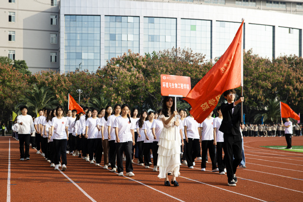 图为环境与生物工程学院方阵 摄影:周逸文