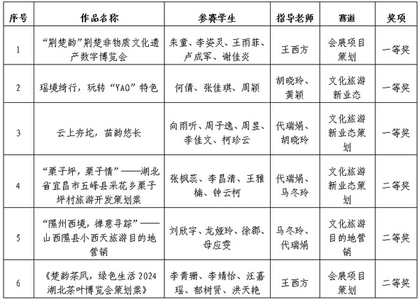 图为获奖情况一览表