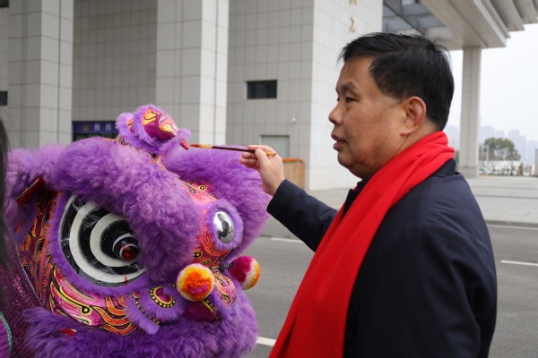 学校董事长彭秀春,副校长刘生元、桂裕清、张俊、赵北平一同为龙狮点睛,副校长左宗文主持巡游活动。