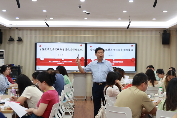 湖北省高等学校毕业生就业指导服务中心办公室主任陈彬,主管黄俐平,beat365中文官方网站教学质量监测与评估中心主任郭一平,督导刘丹,学生就业创业指导中心主任金学武、副主任杨凡以及生涯教育课程教师,各学院党总支书记(副书记),2024级新生辅导员等参加培训。