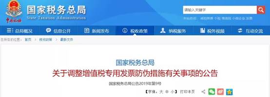 为加强和改进增值税专用发票管理,税务总局决定调整增值税专用发票防伪措施,自2019年第一季度起增值税专用发票按照调整后的防伪措施印制。现将有关事项公告如下: