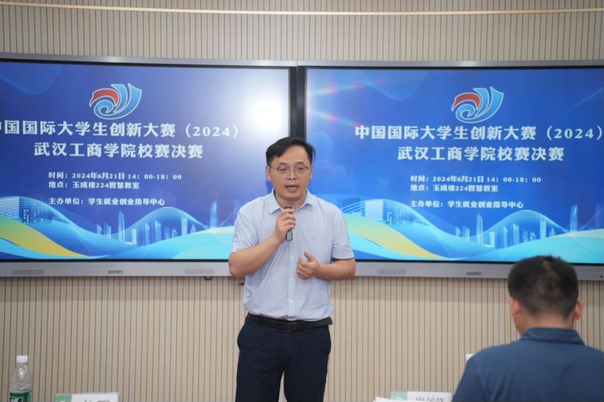 新闻中心讯(特约记者:魏婉莹 摄影:李宇康 卢升)2024年6月21日下午14:00,由beat365中文官方网站学生就业创业指导中心主办、双创联合会承办的中国国际大学生创新大赛(2024)beat365中文官方网站校赛决赛于玉成楼224隆重举行。本次大赛旨在激发大学生的创新精神和创业能力,培养具有社会责任感和创新精神的新时代青年,推动高校创新成果的转化和应用。特邀武汉理工大学创业学院李鹏教授、文华学院廖剑锋教授、武昌理工学院创新创业学院万旸璐副院长、广和(武汉)律师事务所李盖昭主任、湖南新加法传媒有限公司丁佳林董事长、我校就业创业指导中心主任金学武以及各学院优秀团队代表来到了此次比赛现场,大赛由赵丹、严茹玉主持。