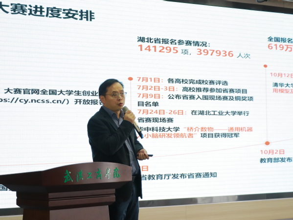 在部署新一届赛事环节,生涯与创业教育教研室主任钱晨详细介绍了2026年中国国际大学生创新大赛的工作安排,从赛事组织、项目培育到支持政策等方面进行了系统规划,为新一轮创新创业工作的开展指明了方向。