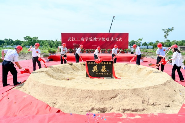 在喜庆的礼炮声中,学校举办方武汉弘博集团董事长巴能军,学校校长孔建益,校党委书记、省政府教育督导专员刘生元,武汉弘博集团副董事长邹继康,副校长桂裕清、张俊、左宗文,校长助理刘春、狄奥来到奠基石处,挥锹铲土为教学楼奠基,共同期待教学楼落成之喜。学校相关职能部门负责人,各学院(部)党总支书记(副书记),教学楼施工方代表,学校学生代表等参加了仪式。仪式由学校副校长张俊主持。