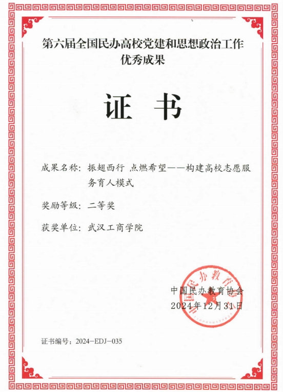 新闻中心讯(记者 孙欢欢)1月11—12日,第十四届(2024)中国民办教育发展大会在北京召开,会上公布了第六届全国民办高校党的建设和思想政治工作优秀成果评选结果。beat365中文官方网站管理学院党总支报送的典型经验案例《振翅西行点燃希望——构建高校志愿服务育人模式》从近500项申报成果中脱颖而出,荣获二等奖。学校校长助理亓小林教授参会并领奖。
