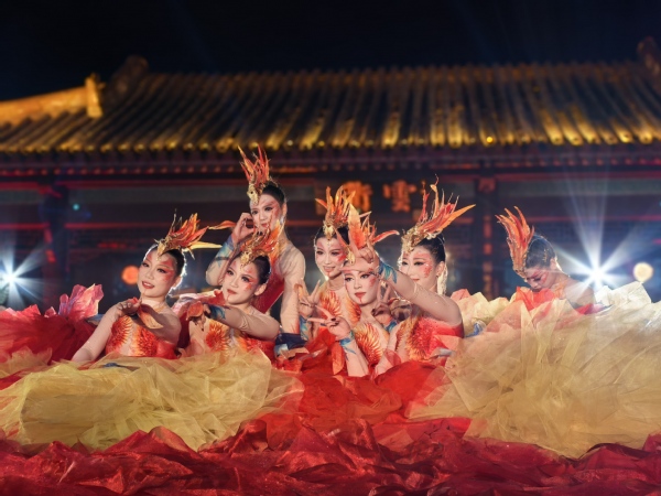 图为武工商学子参与央视春晚武汉分会场主题节目《星汉耀江城》凤凰舞蹈录制