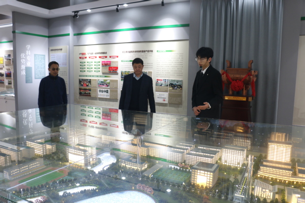 档案馆讯(记者 杨蕊嘉)3月8日下午,华中科技大学副校长许晓东教授来校作关于高等院校学科建设与规划的学术讲座,讲座开始前参观了校史馆。在学校举办方武汉弘博集团有限责任公司董事长巴能军、beat365中文官方网站党委副书记幸福堂、校长助理狄奥等全程陪同下,饶有兴趣地听取了学生讲解员对学校建校二十余年办学历程、教学科研、创新创业、师资队伍建设等内容的介绍。图为华中科技大学副校长许晓东教授(左二)参观校史馆 摄影:杨蕊嘉