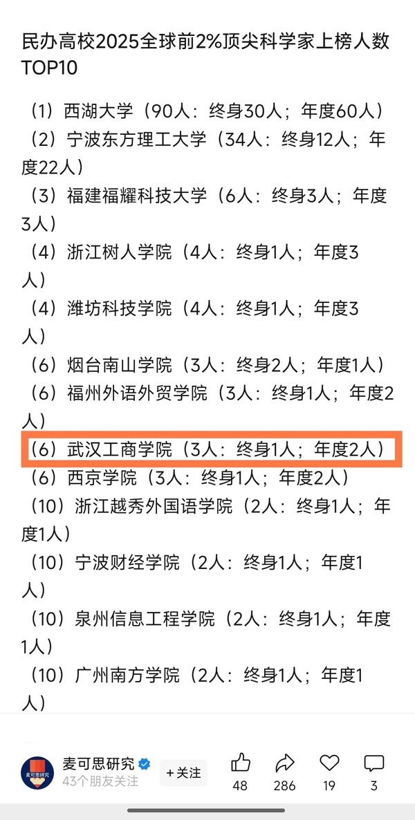 据悉,该榜单基于论文引用数、h指数、合著者修正的hm因子、单独或第一作者文章引用数等多项指标,从全球近700万名科学家中遴选出排名前2%的学者,涵盖22个学科领域和174个细分子领域。中国内地共有超过600所高校的学者入选。“终身科学影响力”榜单关注科学家整个职业生涯的学术贡献,而“年度科学影响力”榜单则聚焦于上一年度的研究成果与影响力,全面客观地反映科学家的学术实力与号召力。