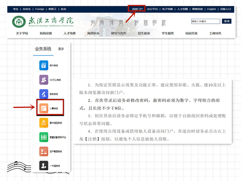 登录信息门户系统和老人事系统帐号:教职工工号