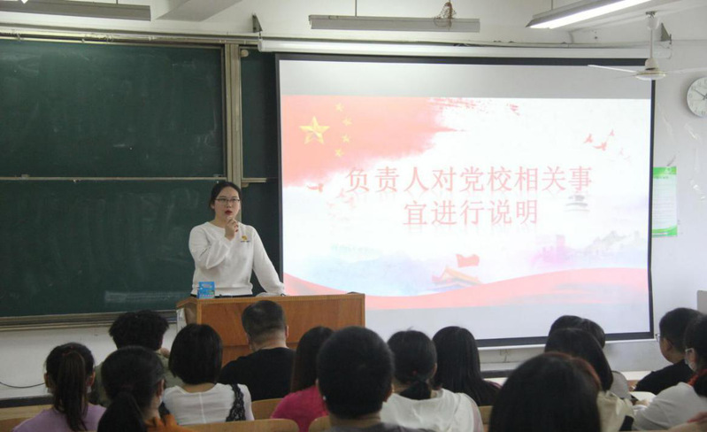 首先由杨睿书记致辞。杨睿书记对全体有幸能够参与党校培训的新一批学生致以祝贺,他表示,由于疫情的特殊原因,本期党校培训不得不推迟,但如今能够聚集于此共同参与党校培训并在培训后顺利通过结课考试,这也是一种对个人能力的肯定。杨睿书记就入党动机这一点进行了重点论述,他明确说明,参与党校培训应当有足够明确的入党动机,强调在培训中应认真参与学习、接受组织考察。