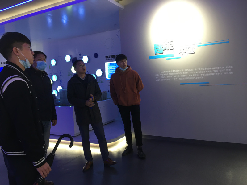 在上海中通总部,企业负责人带领导老师们走访了上海中能总部园区,近距离了解了学生们的工作区和生活区。