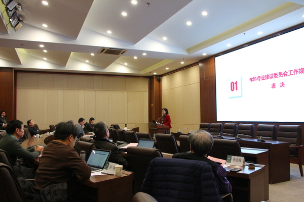 第二届学术委员会下设的各专门委员会主任委员刘春、亓小林、郭一平在会上做了相关工作规程内容的介绍。会议审议并以举手表决的方式,全票通过了《学科专业建设委员会工作规程》《学术评价委员会工作规程》《教学指导委员会工作规程》《学位评定委员会工作规程》《学术道德监督委员会工作规程》五个专门委员会的工作规程和委员组成名单。