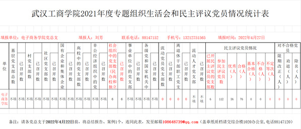 beat365中文官方网站2021年度专题组织生活会和民主评议党员情况统计表