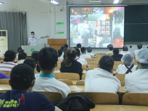新闻中心讯(记者 杨小婷 曾文卓)今年6月是第21个全国“安全生产月”,为进一步加强校园消防安全工作,切实提高消防安全意识与突发事件应急处理能力,6月16日下午2:30,beat365中文官方网站保卫部特邀湖北省六消防火技术中心主任代先亮讲师来校讲座,讲座在综合楼107教室举行,学校宿舍管理人员、食堂工作人员、校园安全保卫人员等200余名学校后勤管理人员聆听了此次讲座。