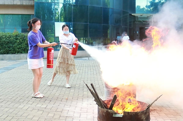 图为灭火器演练现场 摄影:张婉静