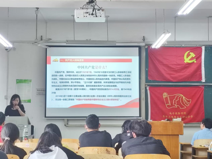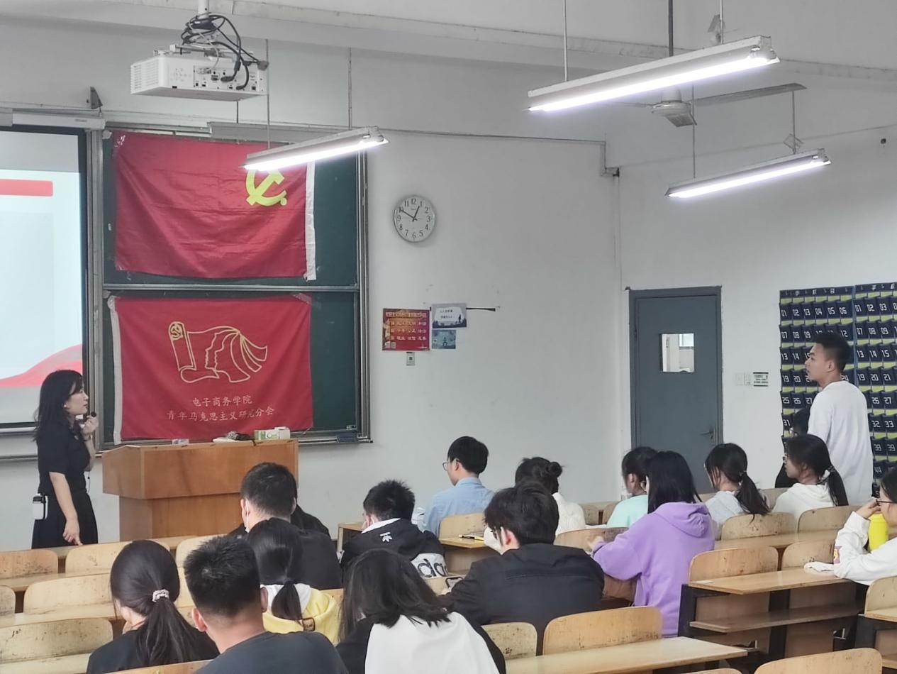 电子商务学院青年马克思主义研究分会讯(记者:曾志航,摄影:曾志航) 2023年5月24日中午12:30,于综合楼208电子商务学院开展第十一四期党校。本次党课由舒娟老师给党校同学讲解中国共产党的宗旨、纲领科学理论武装头脑夯实根基。