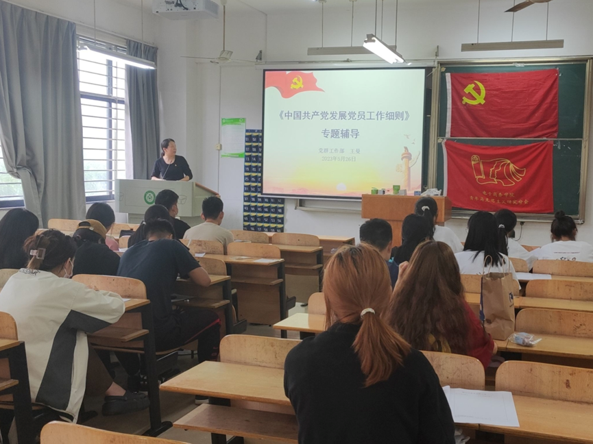 电子商务学院青年马克思研究分会讯(记者:赵加敏 摄影:姚熙远) 2023年5月26日中午12:30,在综合楼205教师开展第十四期党校第四讲,主要由王曼老师给参加党校的同学讲解中国共产党发展党员工作细则。
