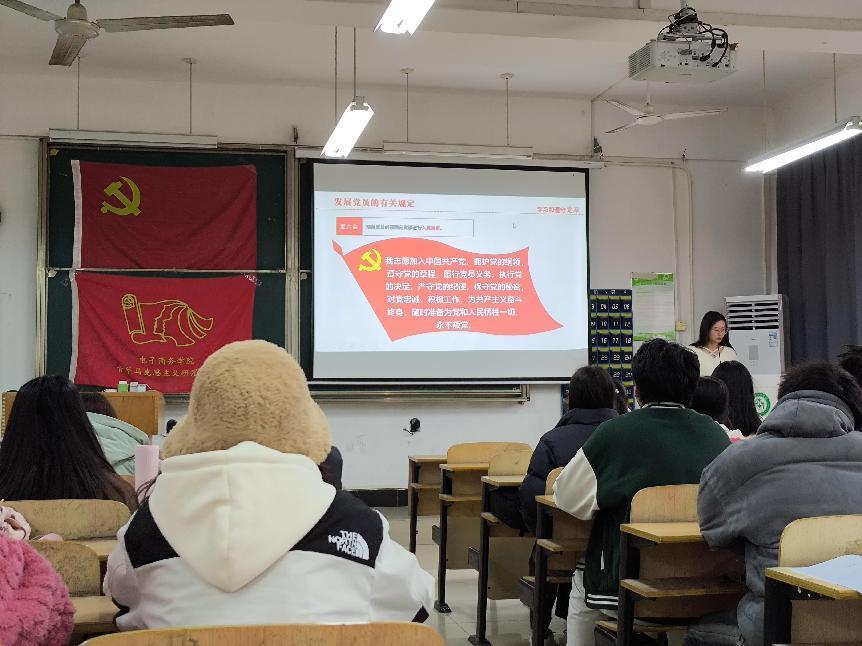 2023年11月30日中午12:30在综合楼209召开了第十五期党校培训班第四讲,本次党课由电子商务学院2022级辅导员朱懿老师主讲。