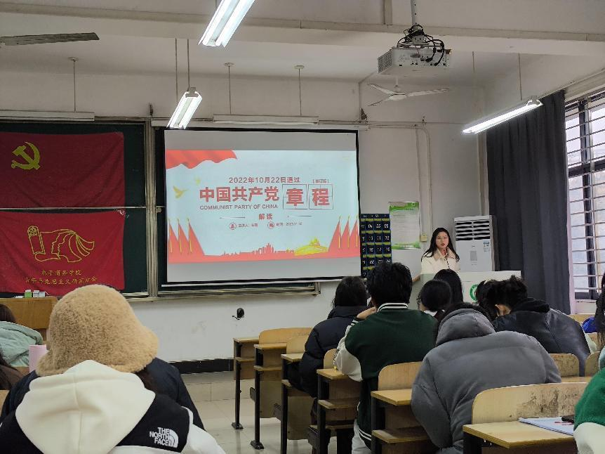 朱懿老师首先介绍了第十五期党校培训班第四讲的主要讲解内容,强调了学习党章对于入党积极分子的重要性,指出“认真学习党章、严格遵循党章,是加强党的建设的一项基础性经常性工作,也是全党同志的应尽义务和庄严责任,对加强全党党章意识,增强党的创造力、凝聚力、战斗力具有极为重要的作用。”随后指出党的二十大修改党章的四个重大意义。
