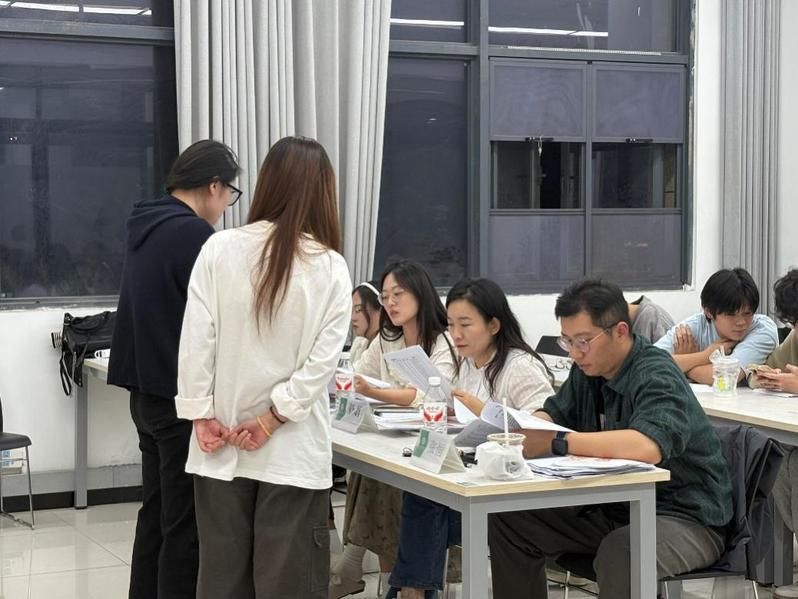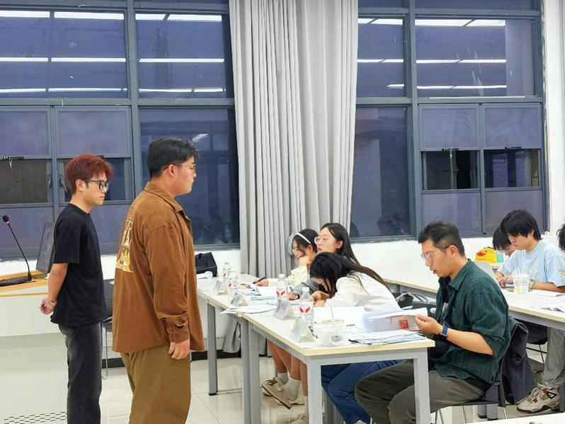 图为评委老师对参赛选手进行方案点评 摄影:杨书颖