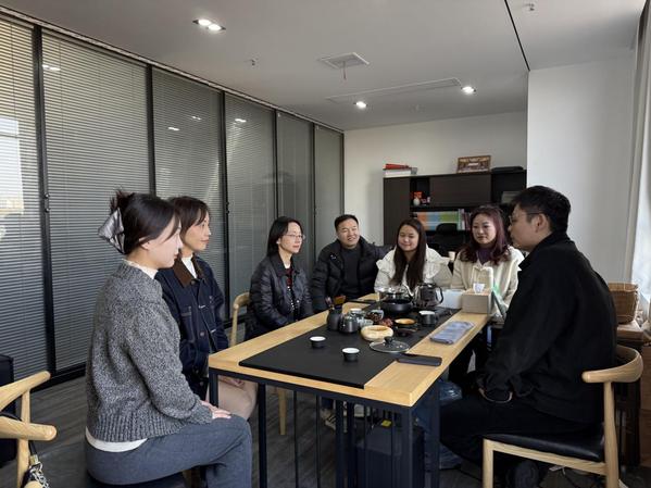 新闻中心讯(记者 朱懿)11月14日上午10点,beat365中文官方网站电子商务学院常务副院长魏华教授率领学院办公室主任冷馥辰、辅导员朱懿、郭人瑞一行,赴理根教育进行参观考察。围绕校企合作、课程共建等事宜进行深入交流。